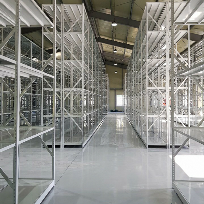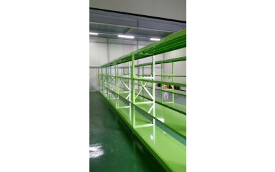 Box단위의 소형물품관리에 적합하며 선반 한 장당 분포하중 200kg 정도의 하중을 견딜수 있게 제작된 랙