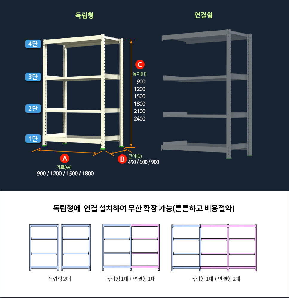단의 높이가 경량랙은 33mm / 중량랙은 50mm 간격으로 조절이 가능합니다.