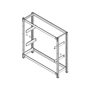 확대 : 중량랙 하단에 연결대 및 하받침이 조립되는 상태